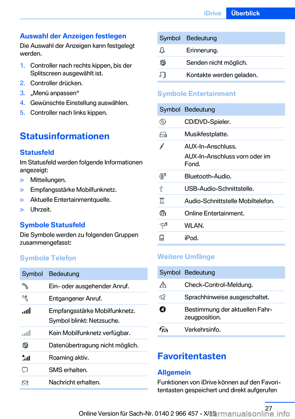 Display angezeigt werden.Seite 25iDriveÜberblick25