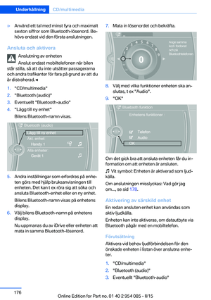 Tryckt på miljövänligt papper, ej klorblekt, återvinningsbart.Online Edition for Part no. 01 40 2 954 085 - II/15