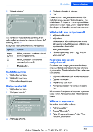 154Ljud156Radio162CD/multimediaKommunikation186Telefon199Office208Kontakter211ConnectedDrive220ConnectedDrive Services