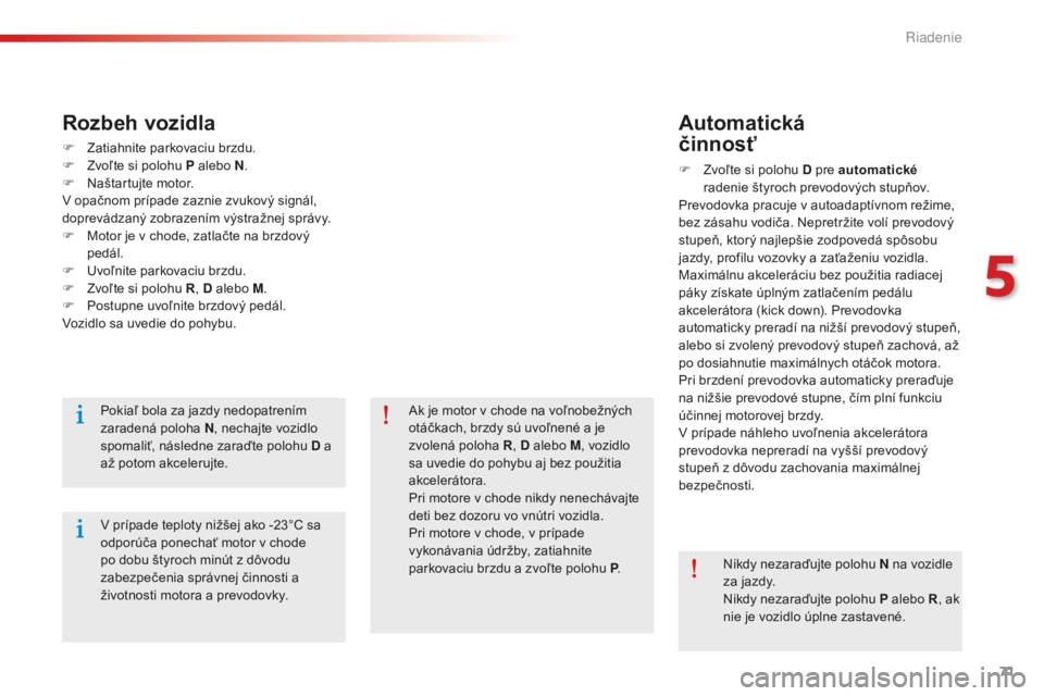 spomaliť, následne zaraďte polohu D a