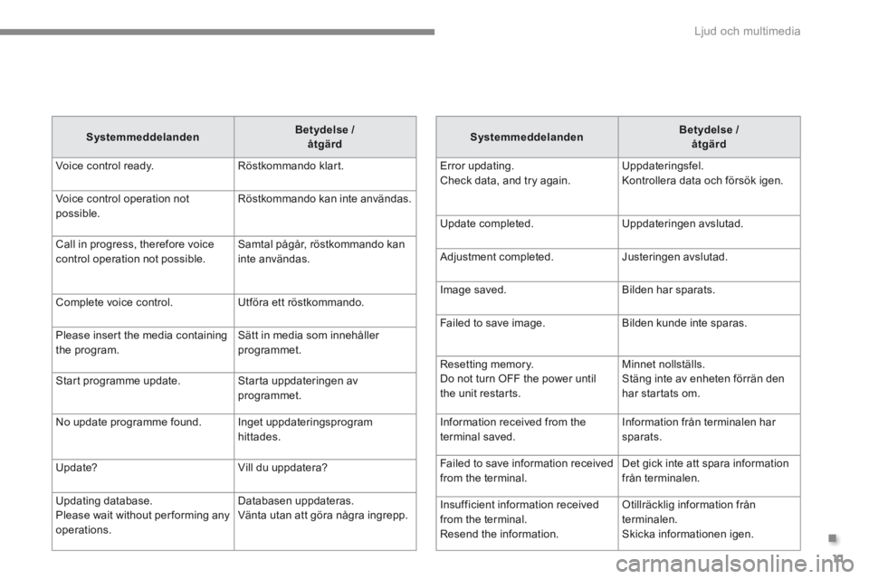 SystemmeddelandenBetydelse / åtgärd
