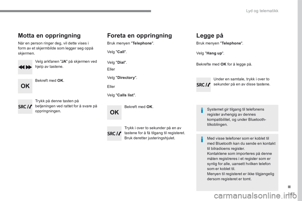 Systemet gir tilgang til telefonens register avhengig av dennes kompatibilitet, og under Bluetooth-tilkoblingen.