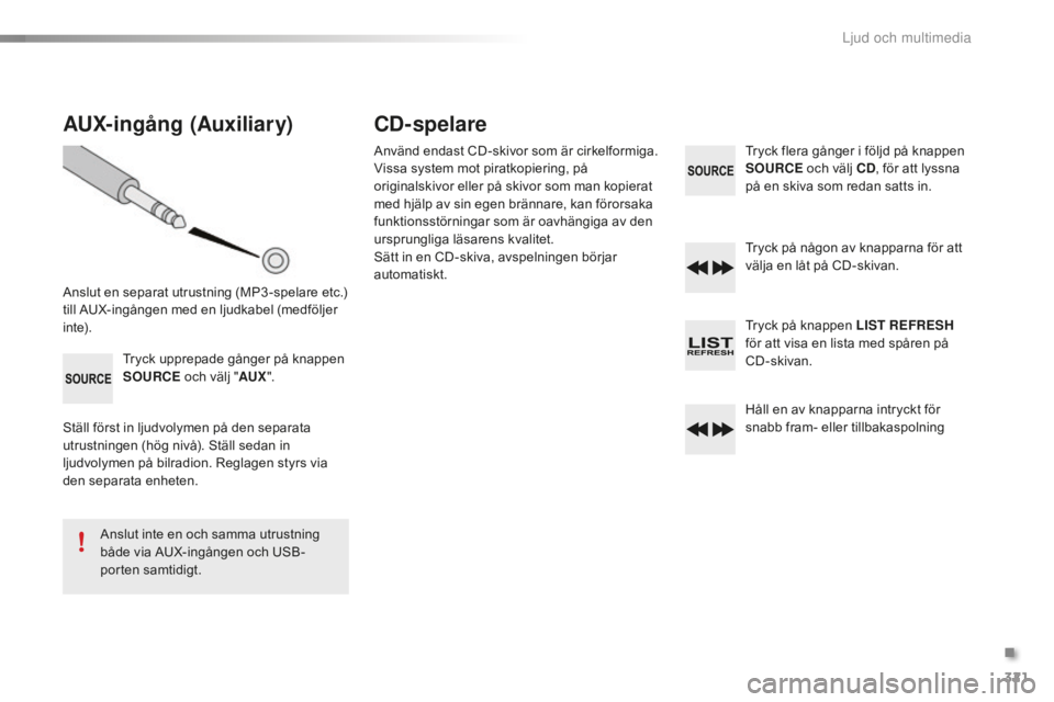 både via AUX-ingången och USB-