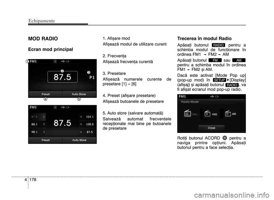 • În ecranul pop-up Radio, media, Setup (setare) și menu (meniu), se