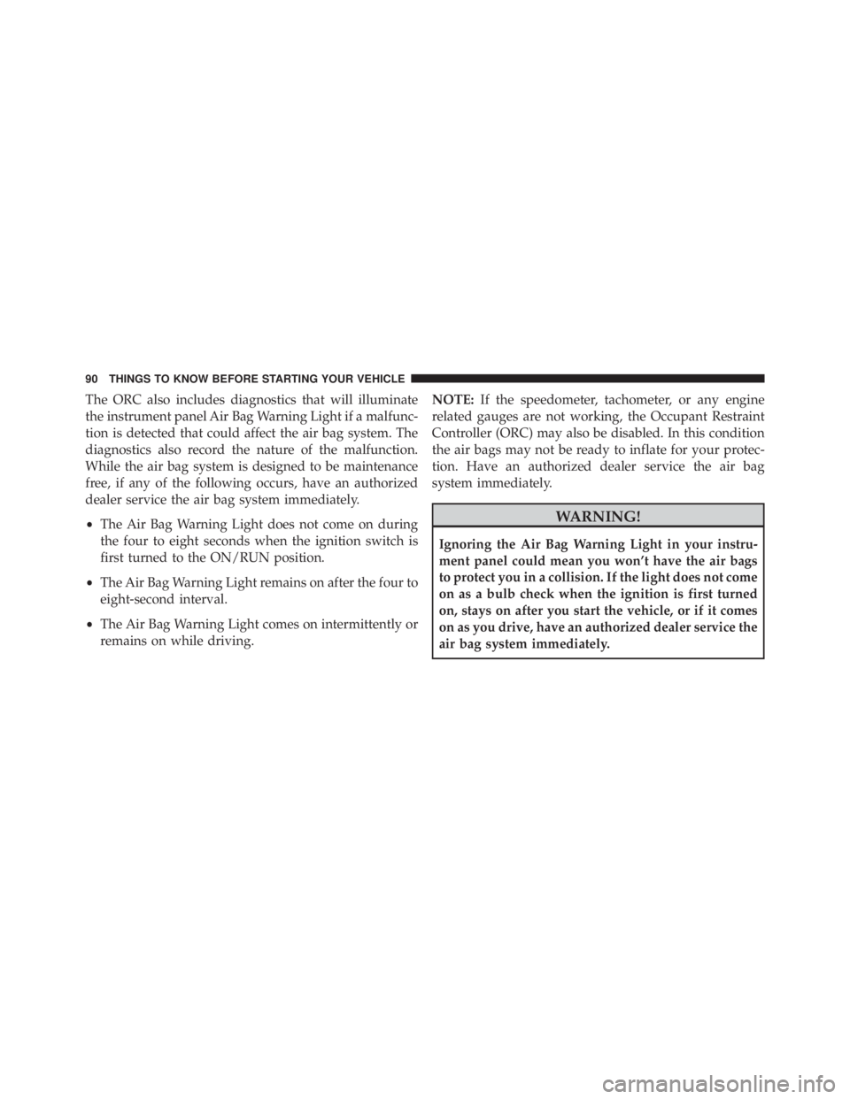 System (“SRS”), the Redundant Air Bag Warn-