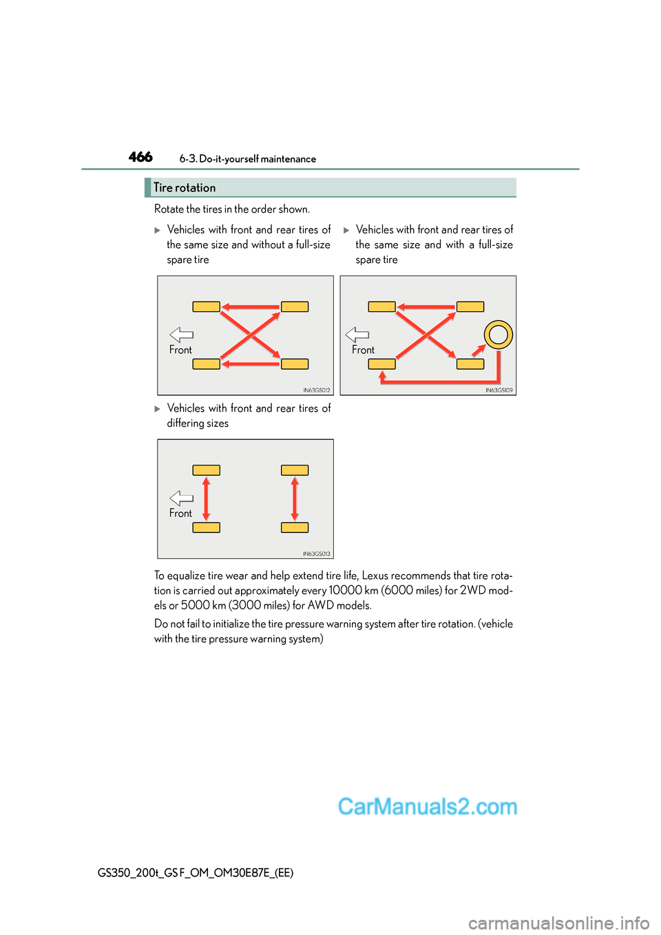 To equalize tire wear and help extend tire life, Lexus recommends that tire rota-