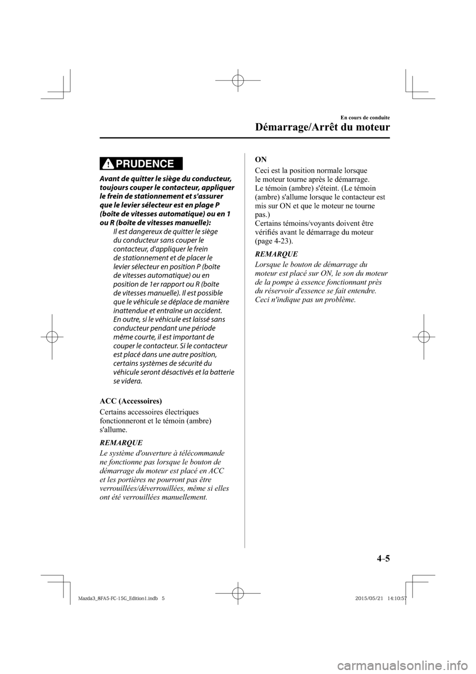 2016 MAZDA MODEL 3 HATCHBACK Manuel du propriétaire (in French)