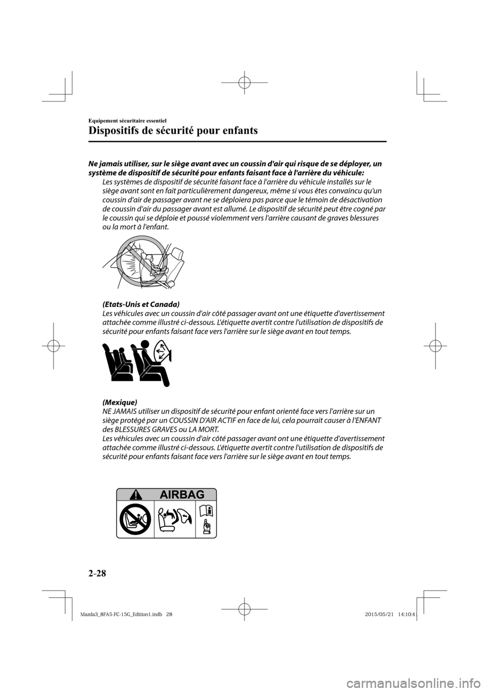 Même si le coussin d'air côté passager avant est désactivé, Mazda recommande vivement