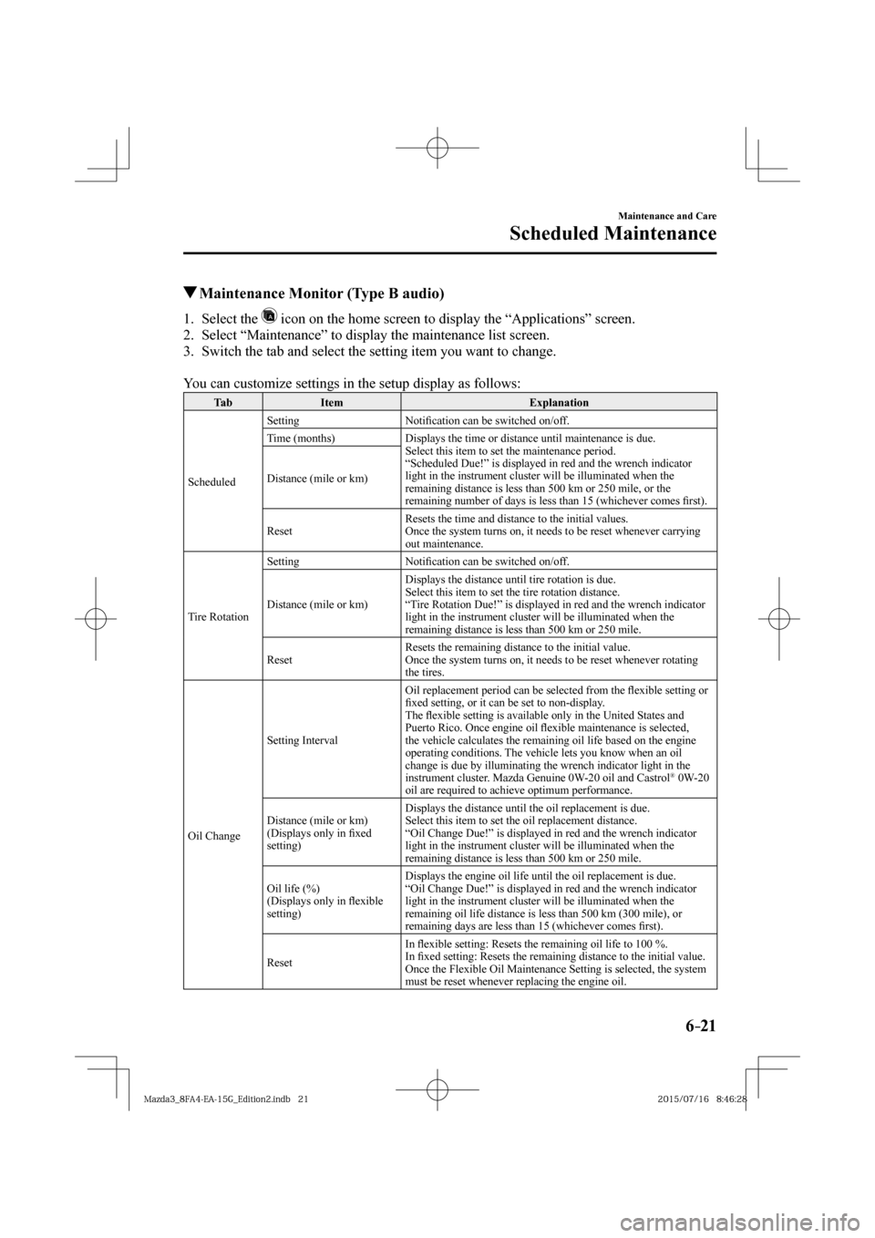 Oil Change Setting Interval Oil replacement period can be selected from the À exible setting or