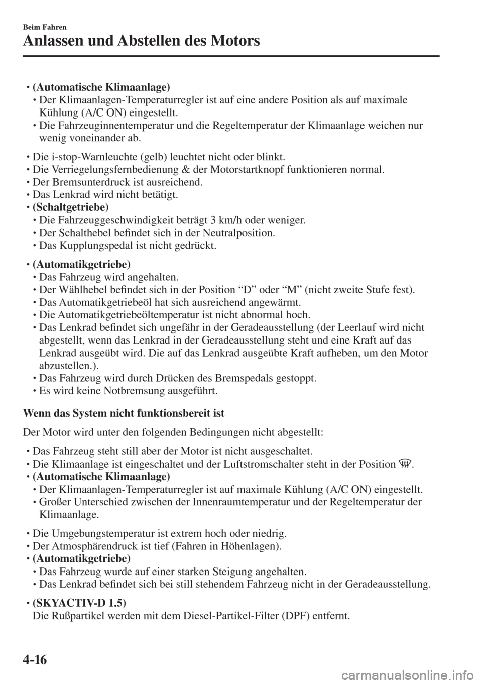 Unter den folgenden Bedingungen wird der Motor abgestellt und die i-stop-Kontrollleuchte