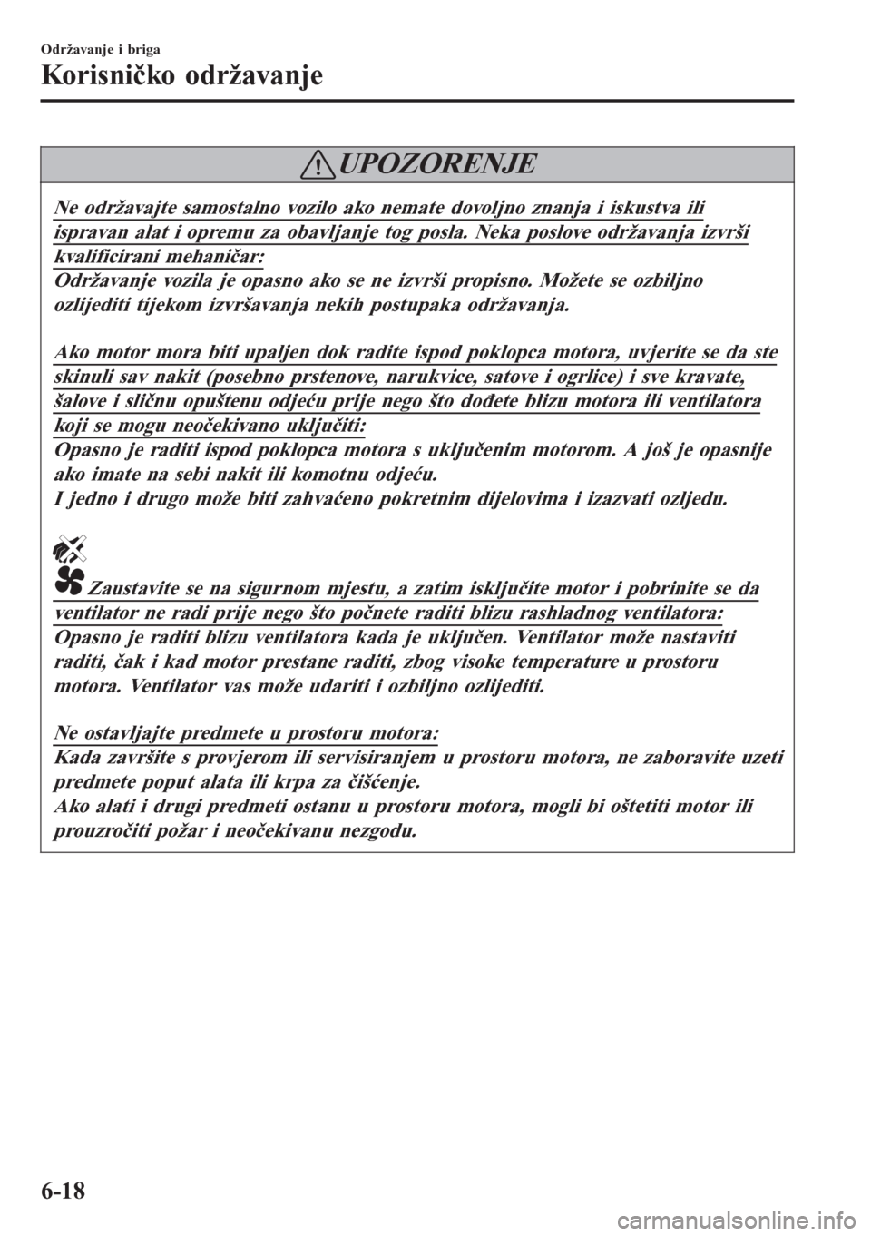 Održavanje vozila je opasno ako se ne izvrši propisno. Možete se ozbiljno