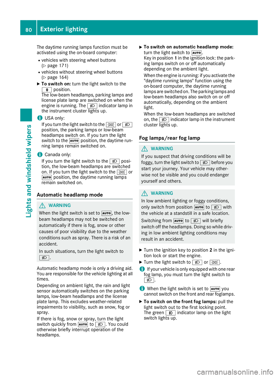 Automatic headlamp mode ................ 80