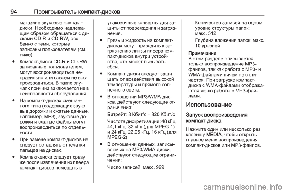 ● В отношении MP3/WMA-дис‐ ков, действуют следующие ог‐