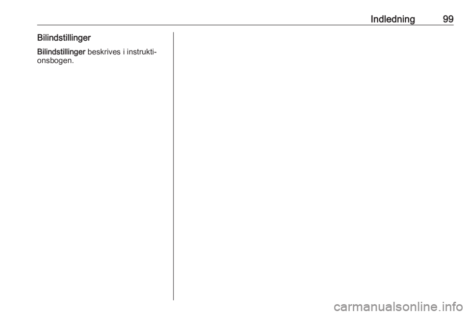 Indledning99BilindstillingerBilindstillinger beskrives i instrukti‐