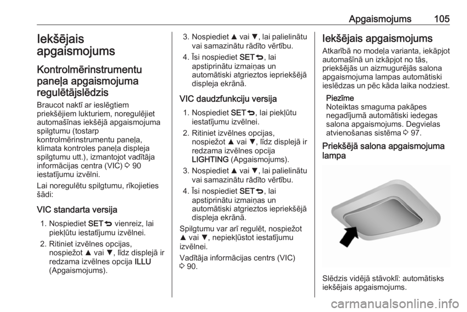 104ApgaismojumsLai rādītāju lukturi iemirgotos piecasreizes, piemēram, mainot kustības