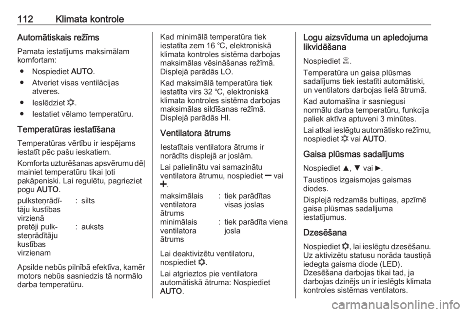 112Klimata kontroleAutomātiskais režīmsPamata iestatījums maksimālam