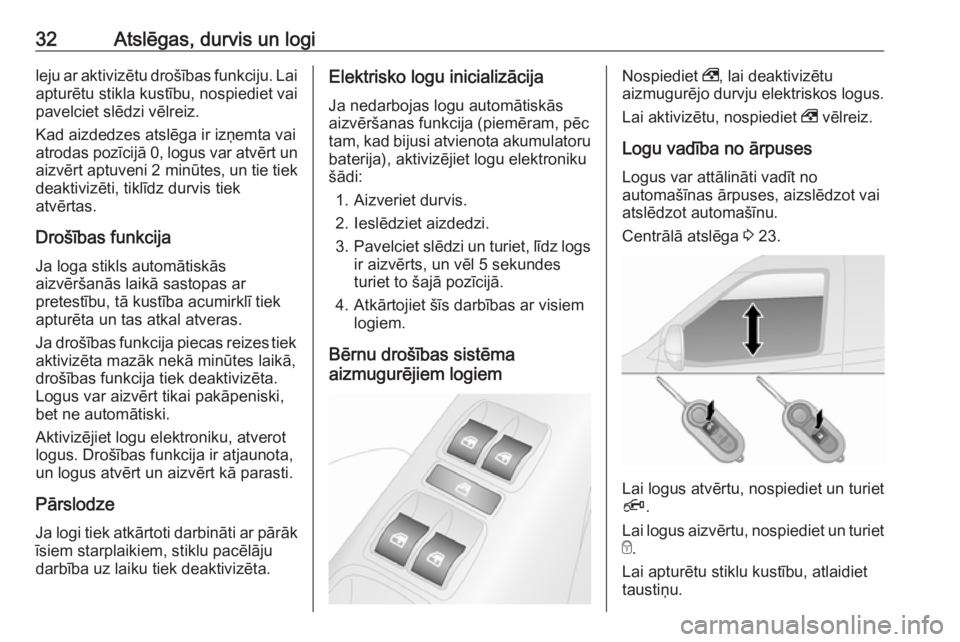 32Atslēgas, durvis un logileju ar aktivizētu drošības funkciju. Lai