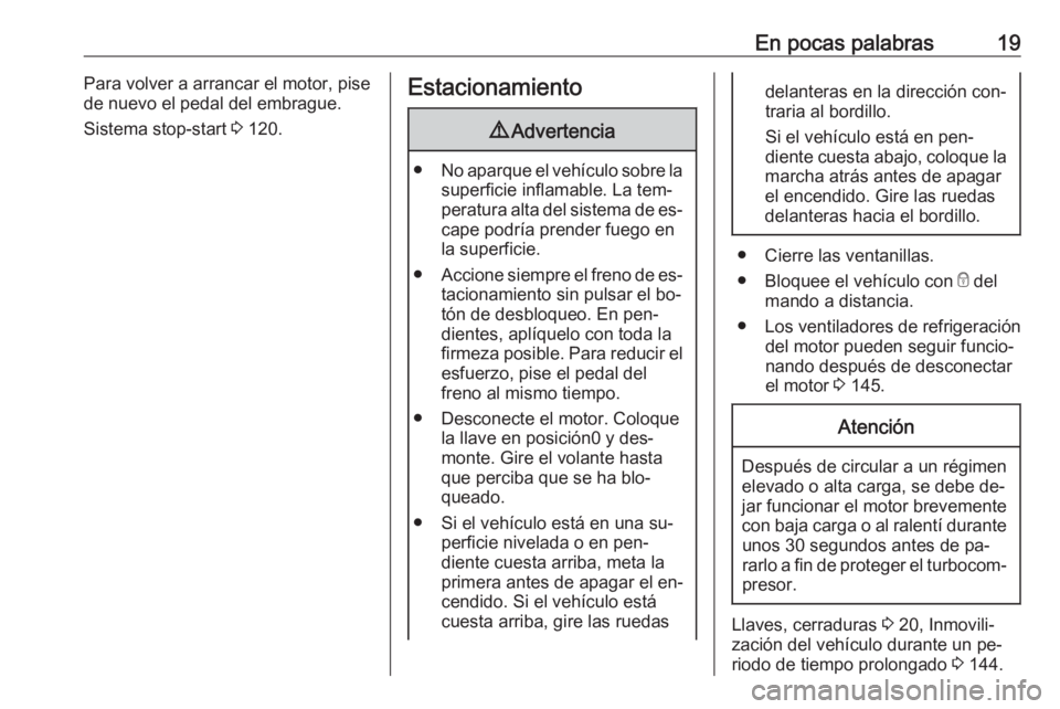 En pocas palabras19Para volver a arrancar el motor, pise