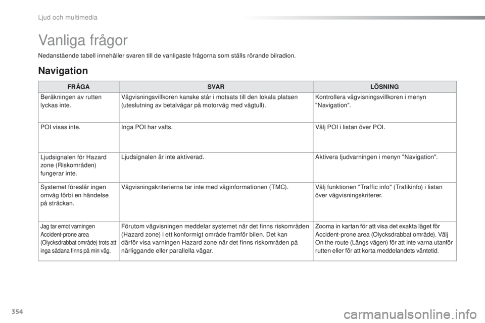 Nedanstående tabell innehåller svaren till de vanligaste frågorna som ställs rörande bilradion.