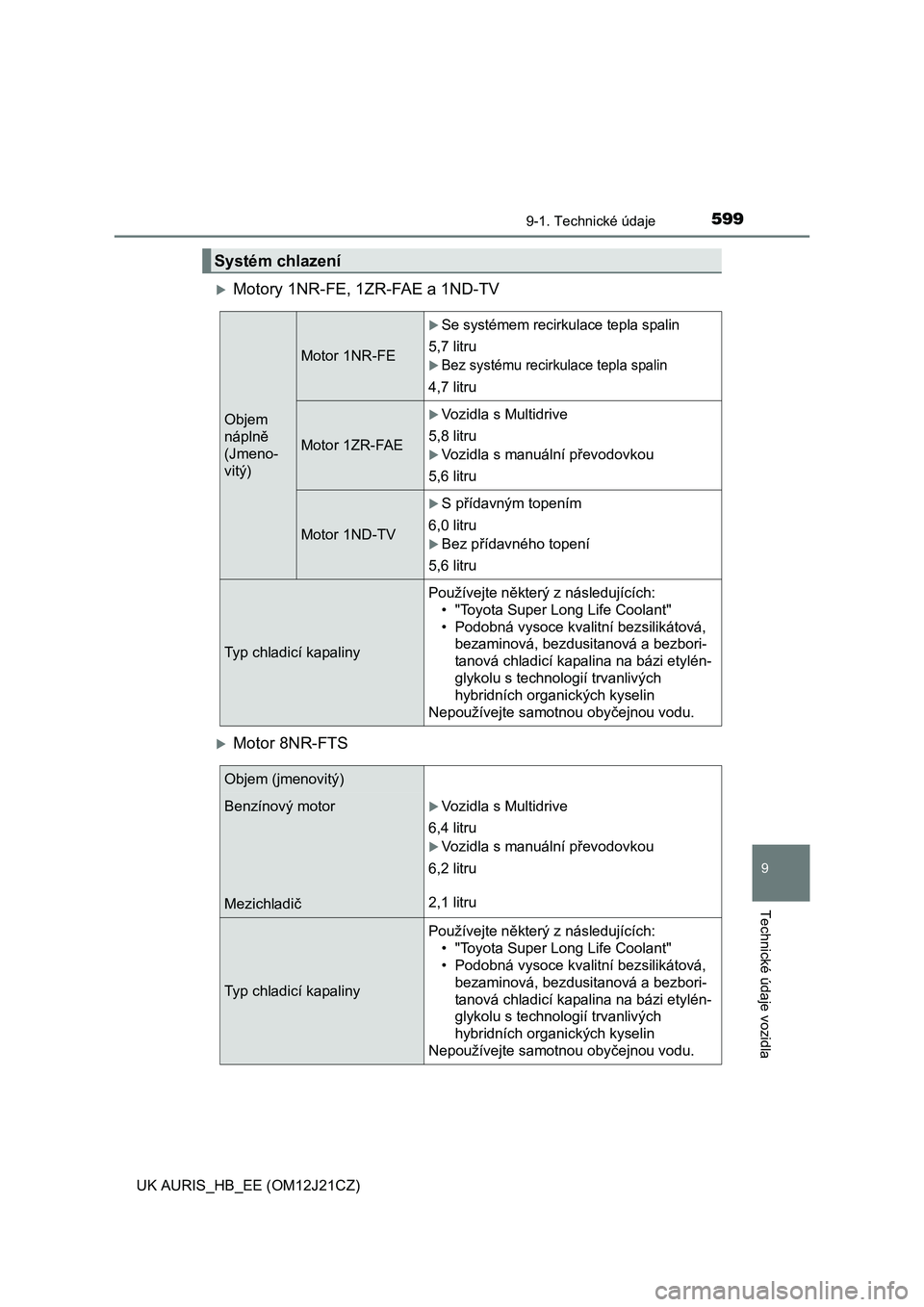 doporučuje používat schválený olej "Toyota Genuine Motor Oil".