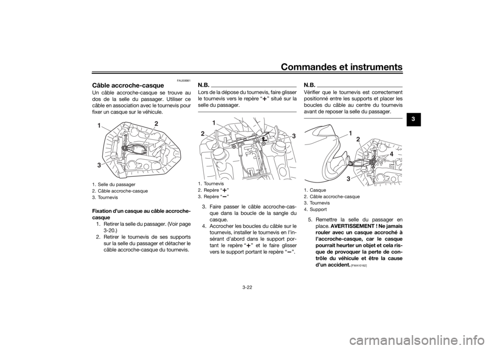 et un sur chaque repose-pied de passager. Pour utiliser les sangles de fixation des ba-