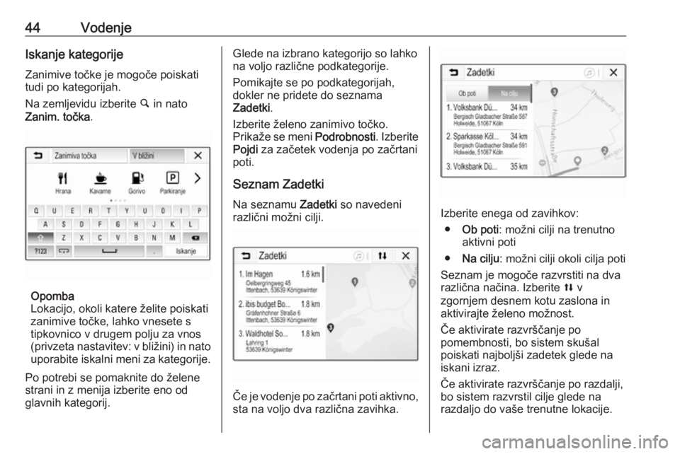 Vnos cilja Aplikacija za navigacijo vsebuje več