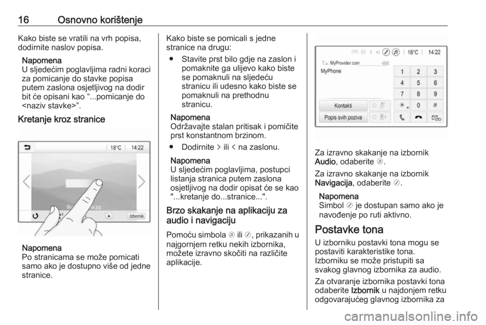 16Osnovno korištenjeKako biste se vratili na vrh popisa,dodirnite naslov popisa.