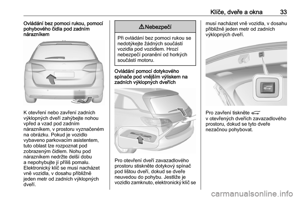 na zadních výklopných dveřích nebo ovládáním bez pomoci rukou není