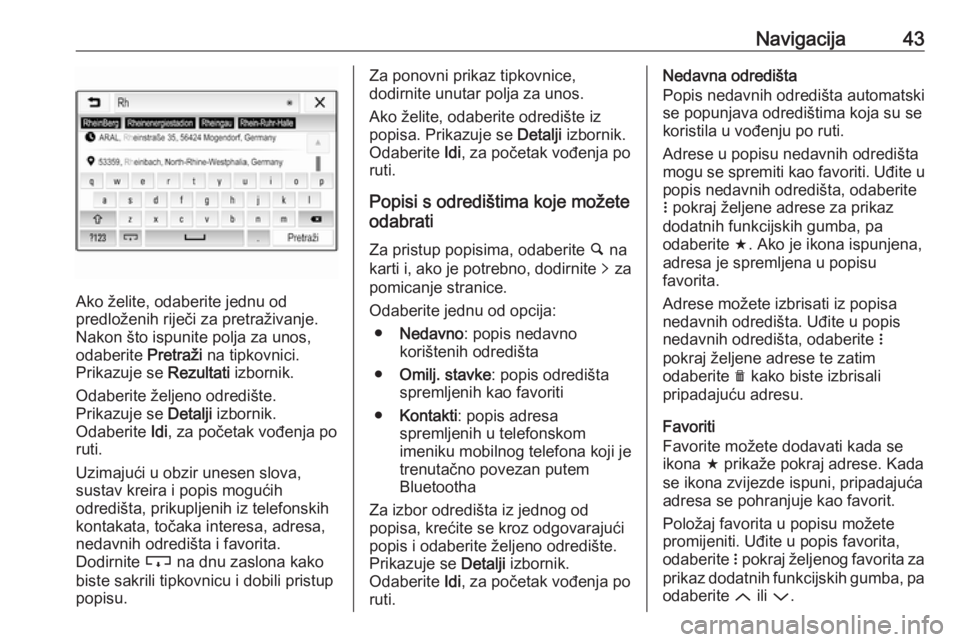 odredišta za vođenje po ruti.Unos odredišta putem karte