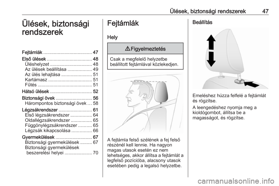 Ülések, biztonsági rendszerek47Ülések, biztonsági