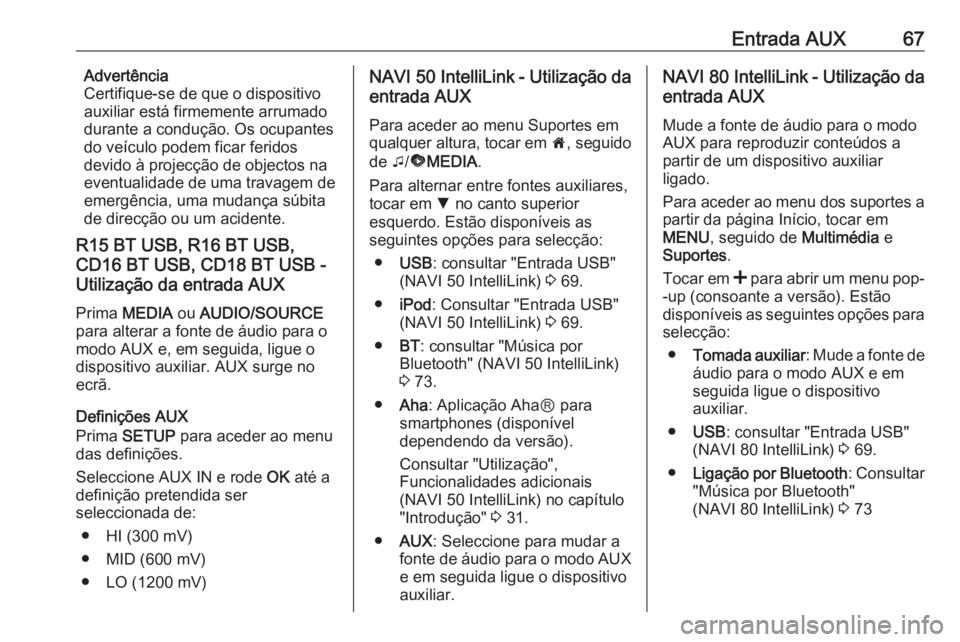 fonte de áudio para o modo AUX e em seguida ligue o dispositivoauxiliar.NAVI 80 IntelliLink - Utilização da