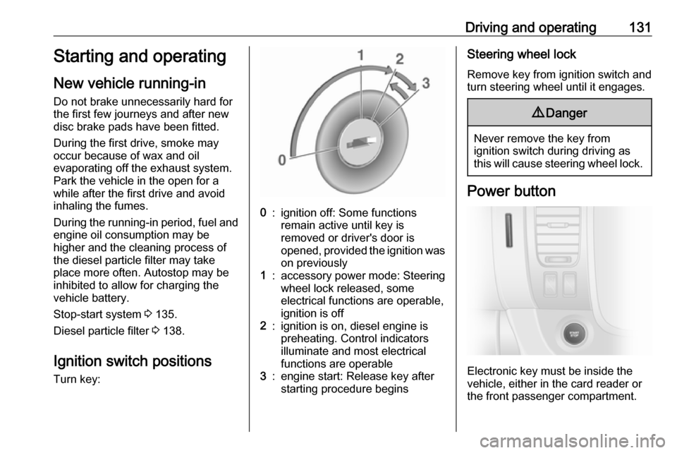OPEL VIVARO B 2017.5  Manual user Driving and operating131Starting and operating