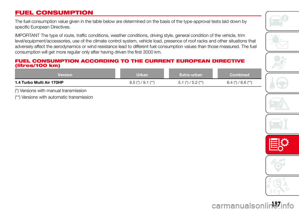 1.4 Turbo Multi Air 170HP8.5 (*) / 9.1 (**) 5.1 (*) / 5.2 (**) 6.4 (*) / 6.6 (**)