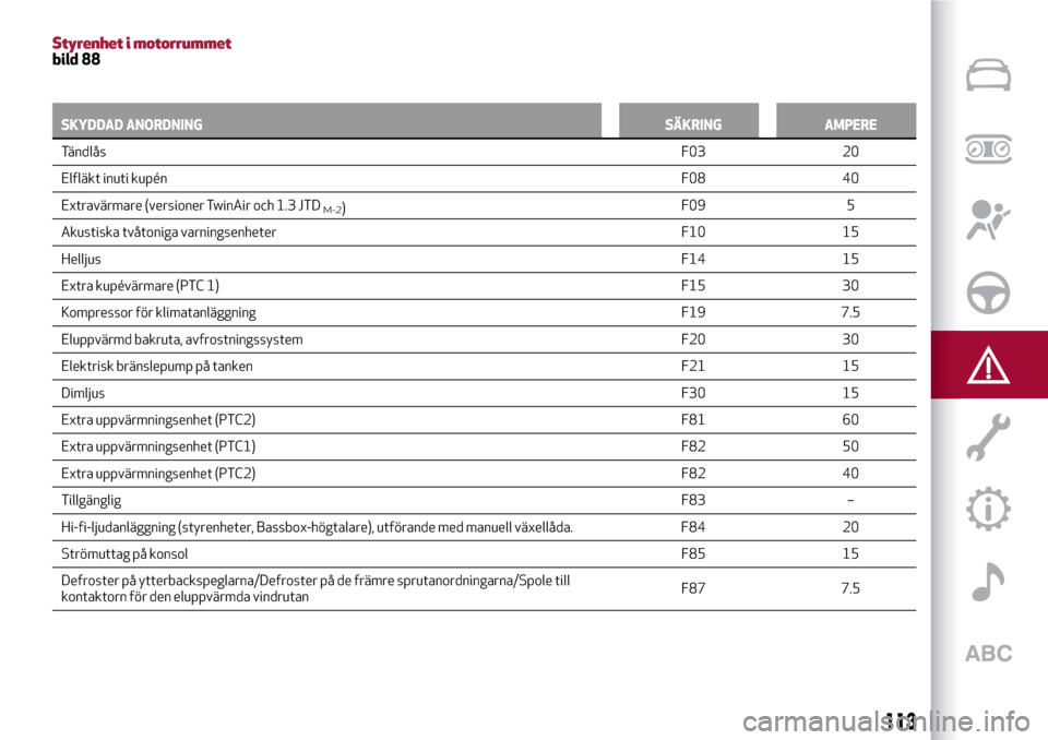 soltak, TPMS-system, belysning av cigarrettändaren, S.B.R.-systemets listF49 5