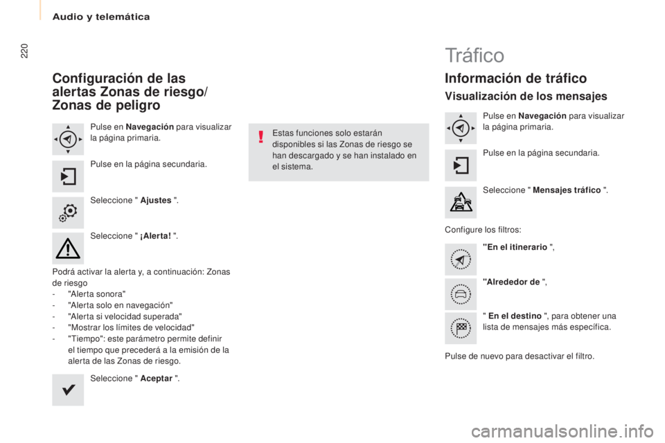 Página secundaria Mensajes tráfico En el itinerario