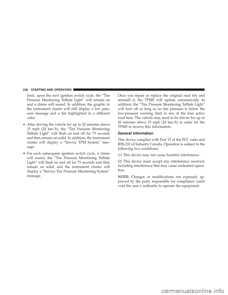 15 mph (24 km/h), the “Tire Pressure Monitoring