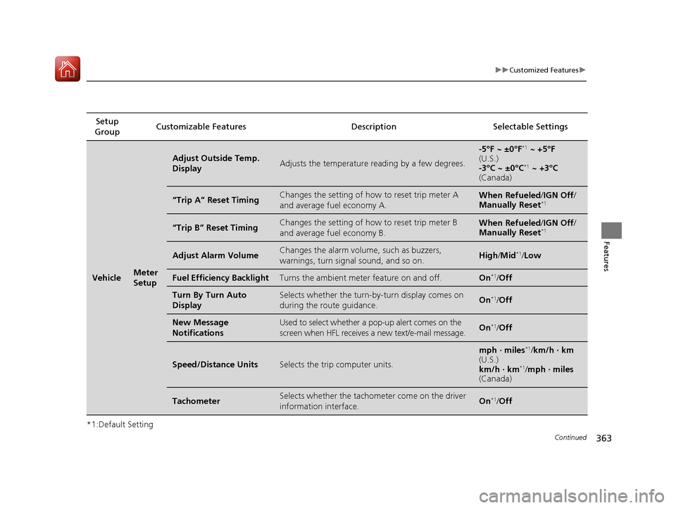 Fuel Efficiency BacklightTurns the ambient meter feature on and off.On*1/Off