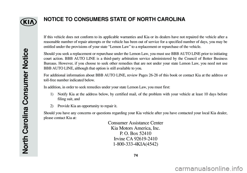 For additional information about BBB AUTO LINE, review Pages 26-28 of this book or contact Kia at the address or
