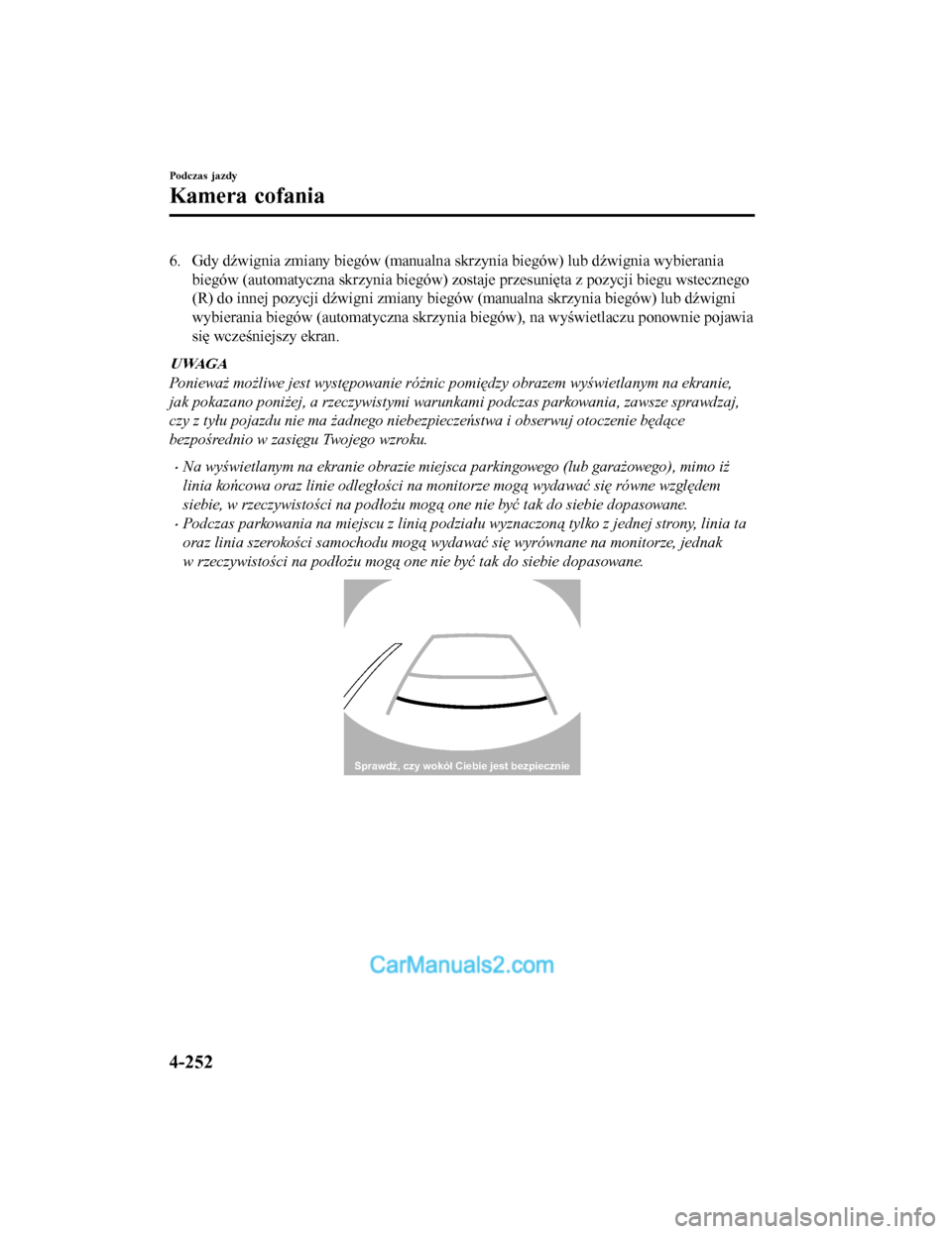 6. Gdy dźwignia zmiany biegów (manualna skrzynia biegów) lub dźwignia wybieraniabiegów (automatyczna skrzynia biegów) zost aje przesunięta z pozycji biegu wstecznego