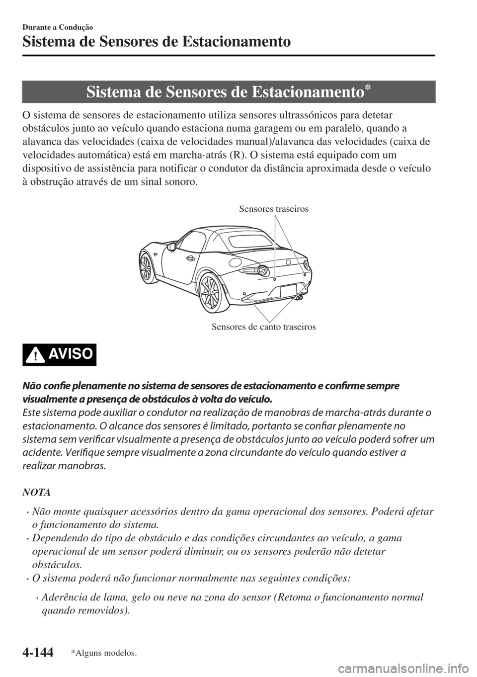 MAZDA MODEL MX-5 2017  Manual do proprietário (in Portuguese) Sistema de Sensores de Estacionamento*