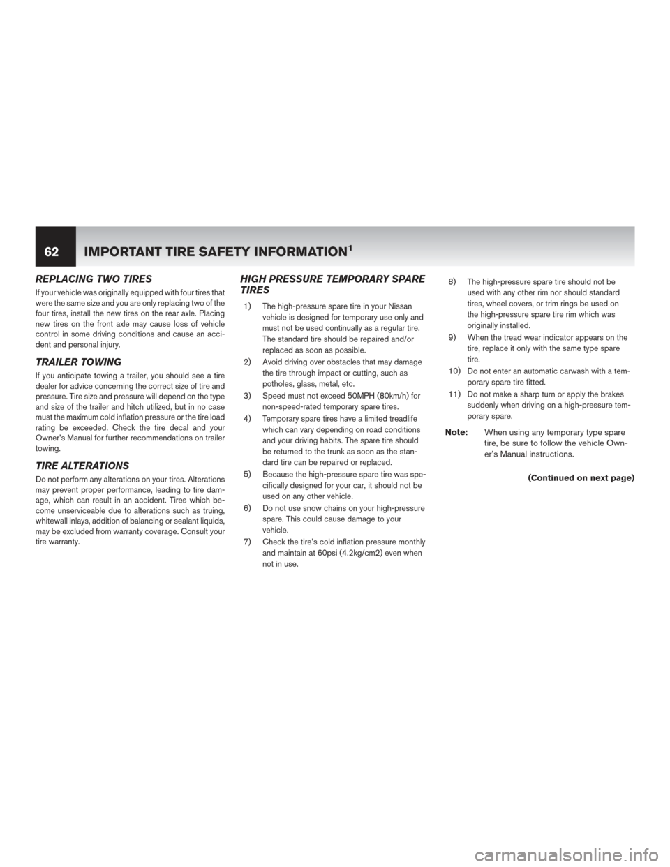 1) The high-pressure spare tire in your Nissanvehicle is designed for temporary use only and