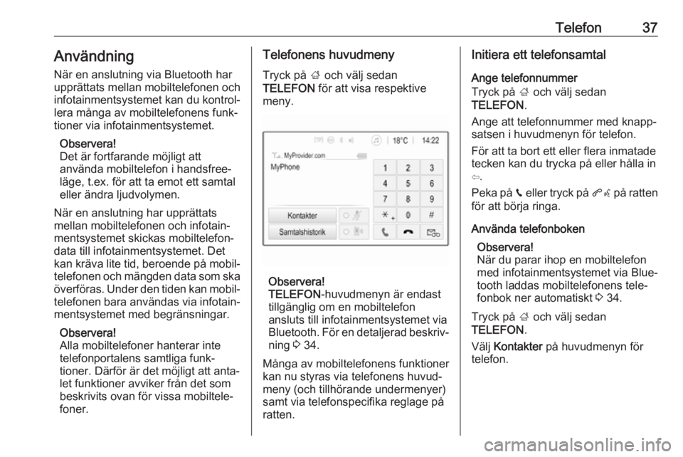 telefonen bara användas via infotain‐ mentsystemet med begränsningar.