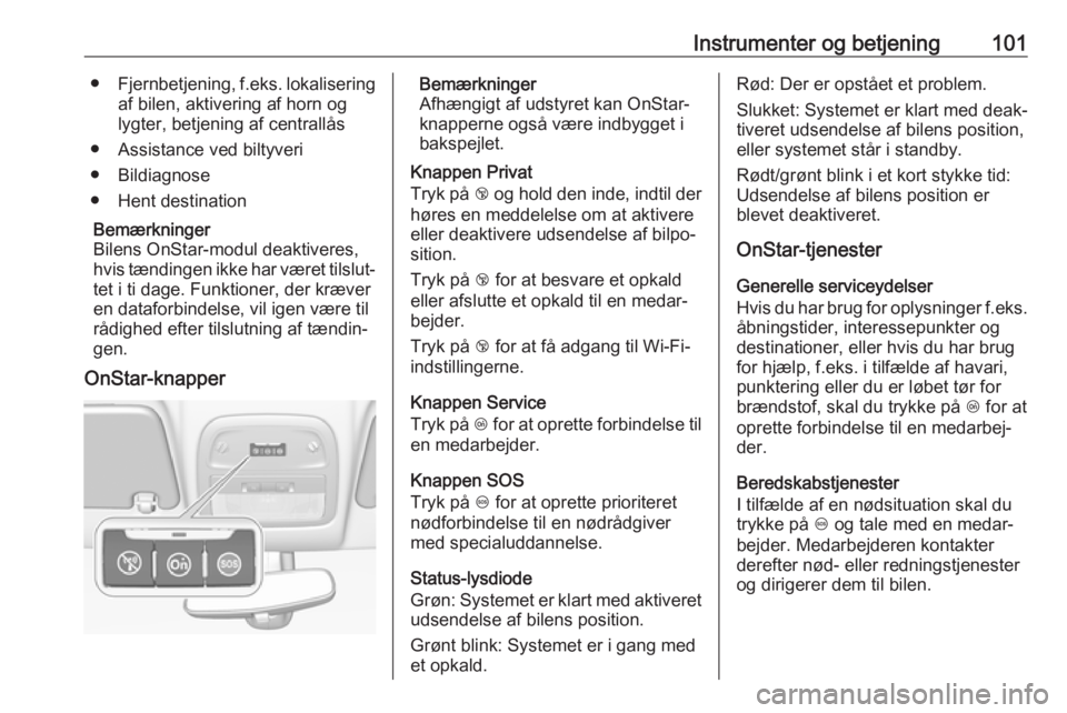 102Instrumenter og betjeningI tilfælde af en ulykke med udløsningaf airbags eller selestrammere opret‐tes automatisk et nødopkald. Medar‐