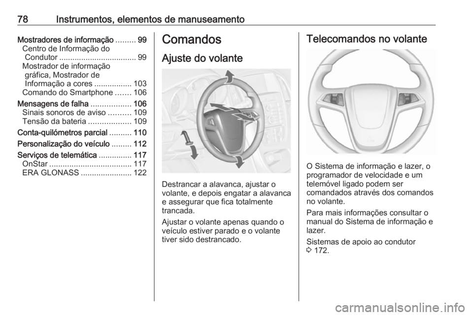 Ajuste do volante .......................78