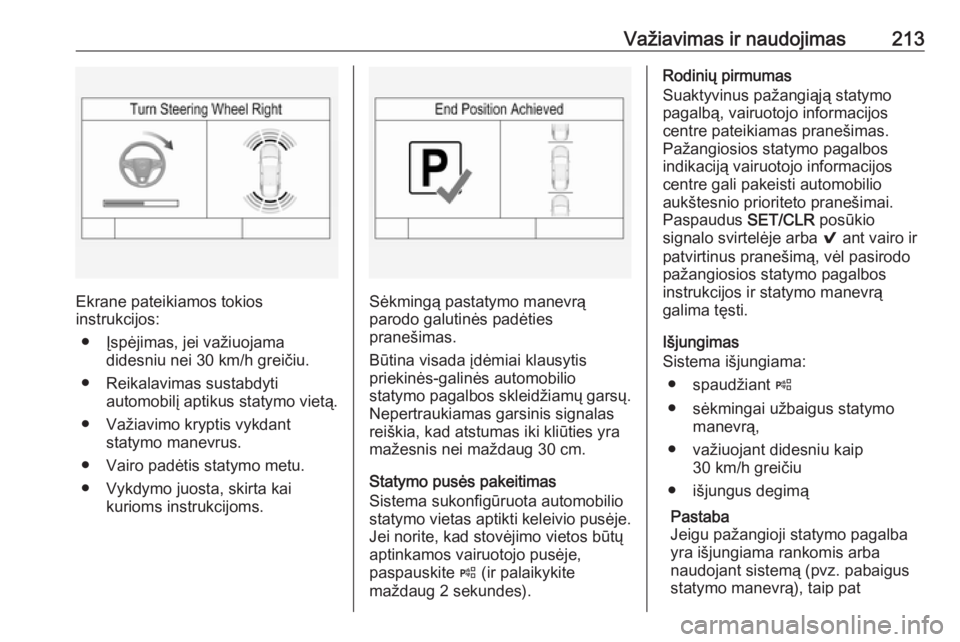 Jei pateikiant statymo instrukcijas aptinkamas objektas, vairuotojo