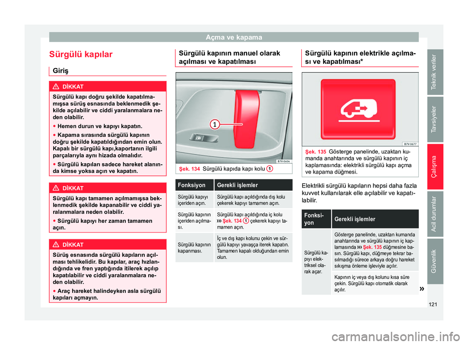 › Şek. 133 1 kapatın, aksi takdirde kabin