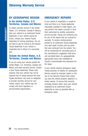 an authorized Toyota dealership. To locate your nearest authorized Toyota dealership,