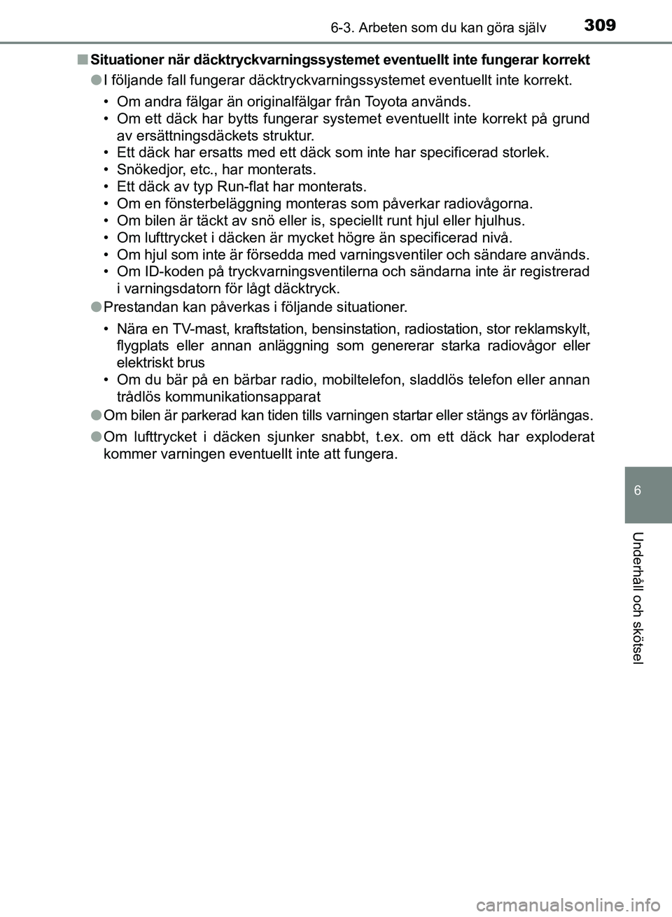 • Om andra fälgar än originalfälgar från Toyota används.