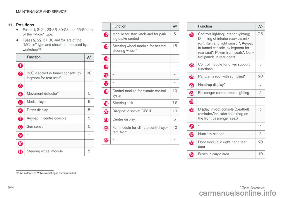 • Fuses 2, 22, 37-38 and 54 are of the"MCase" type and should be replaced by a workshop 18