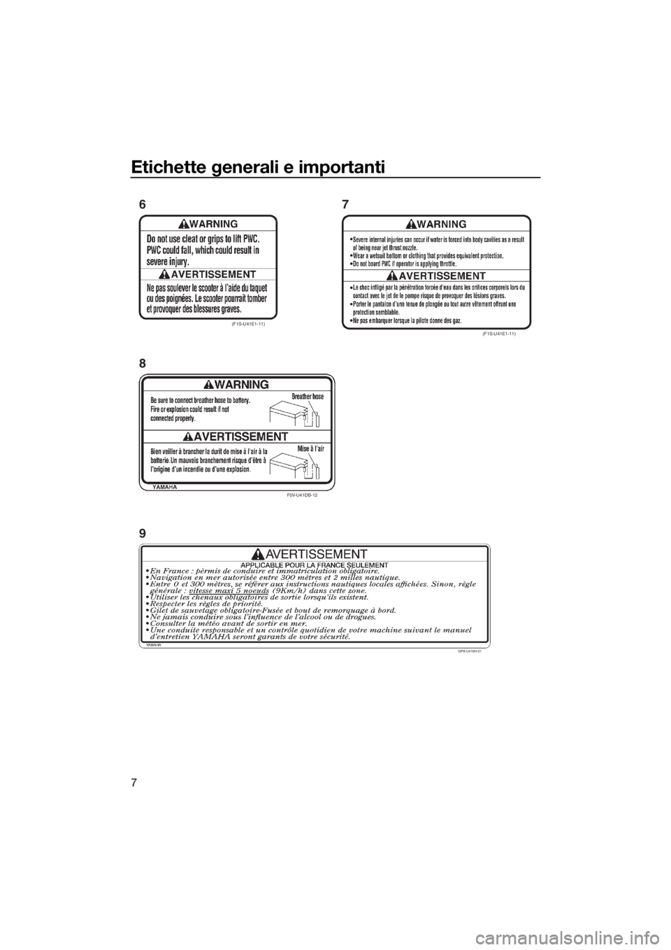 Leggere le seguenti etichette prima di utilizzare la moto d’acqua. In caso di domande, consul-